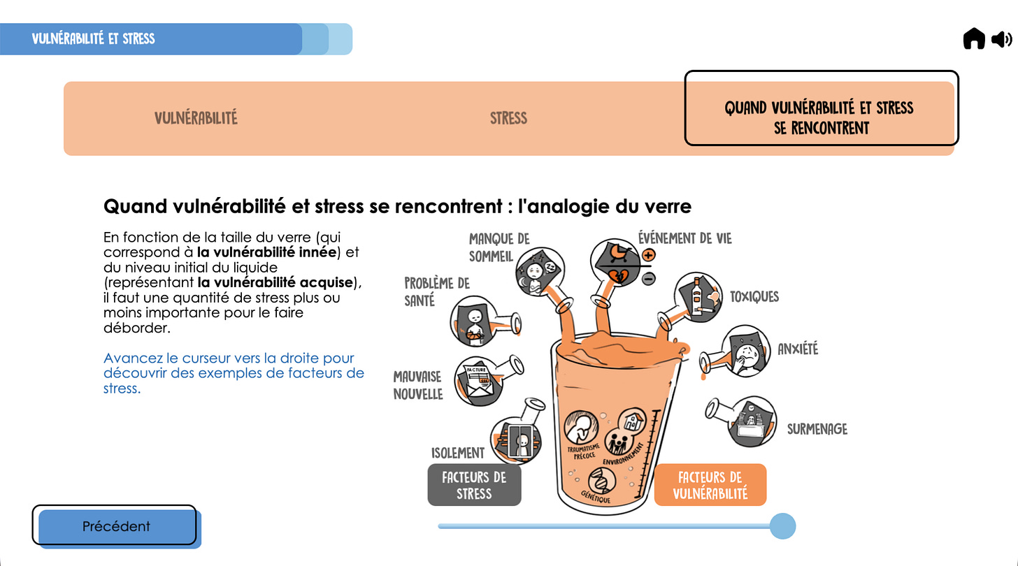 - un diaporama interactif pour comprendre pourquoi certaines personnes développent des troubles face à des facteurs de stress ;